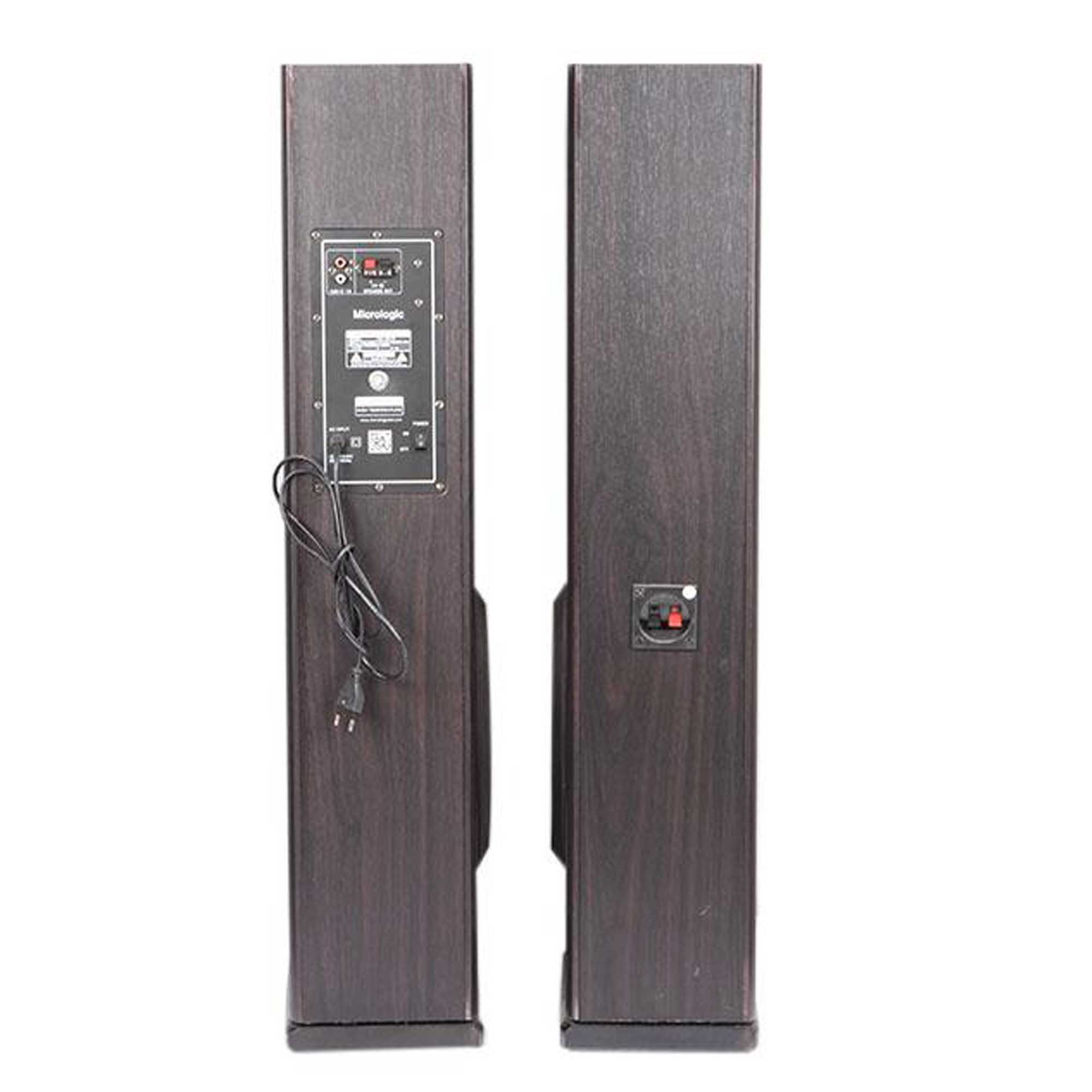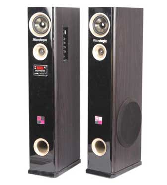 Micrologic ML-1001 TW Multimedia Home Theater Speakers Put any 3-foot space in your home, Whose black design speakers that keep the profile nice and spread the sound out loud.